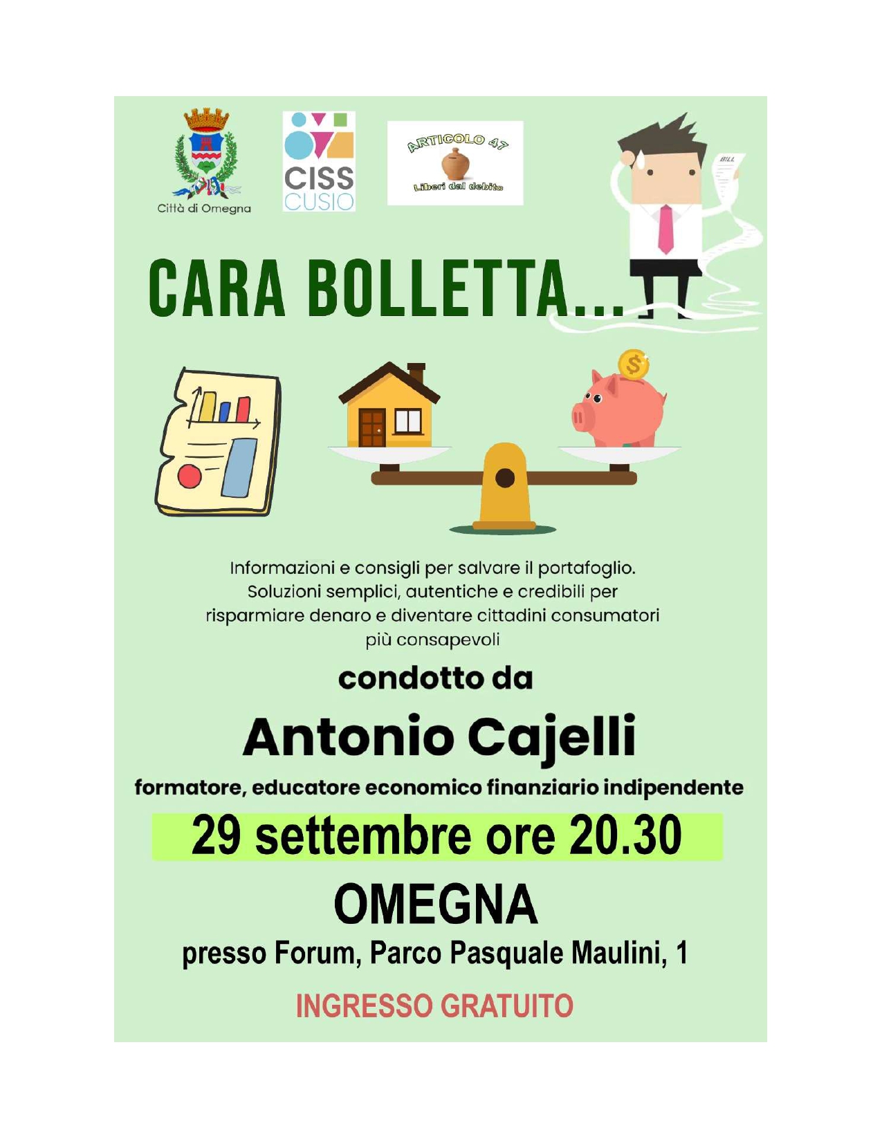 Incontro "Cara Bolletta" con l'esperto Antonio Cajelli, informazioni e consigli per salvare il portafoglio. Soluzioni semplici per risparmiare denaro e diventare cittadini consumatori più consapevoli.