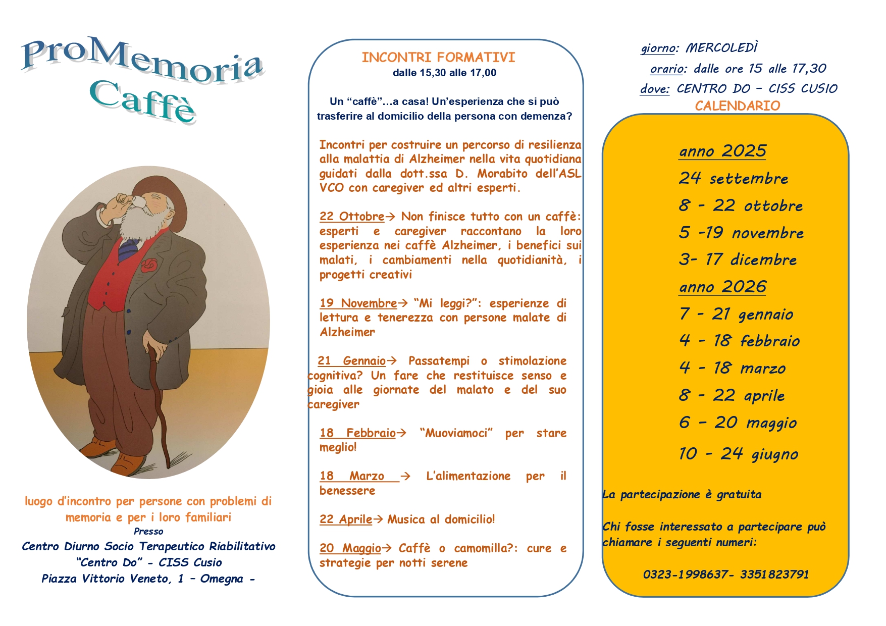 Prende avvio la nuova stagione del ProMemoria Caffè, una serie di incontri dedicati a persone con problemi di